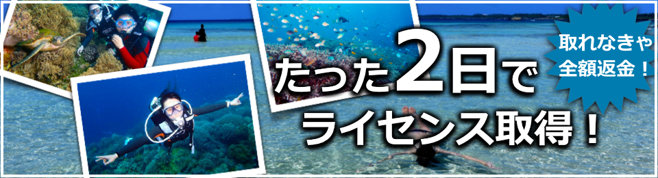 日帰りでも、連日でも、たったの2日間の最短の講習でダイビングライセンスが取れる。
